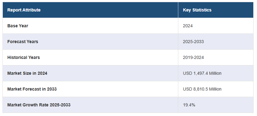 전 세계 3D 프린팅 플라스틱 시장 규모는 2024년 1,497.4백만 달러에 달했습니다. IMARC 그룹은 2025~2033년 동안 19.4%의 성장률(CAGR)을 보이며 2033년까지 시장이 8,810.5백만 달러에 달할 것으로 예상하고 있습니다. 지속 가능하고 친환경적인 생산의 증가, 툴링 및 금형 제조 애플리케이션의 증가, 주문형 생산의 잠재력 증가, 설계 반복 및 최적화 개선, 적층 제조 서비스의 확대가 시장을 추진하는 요인 중 일부입니다.