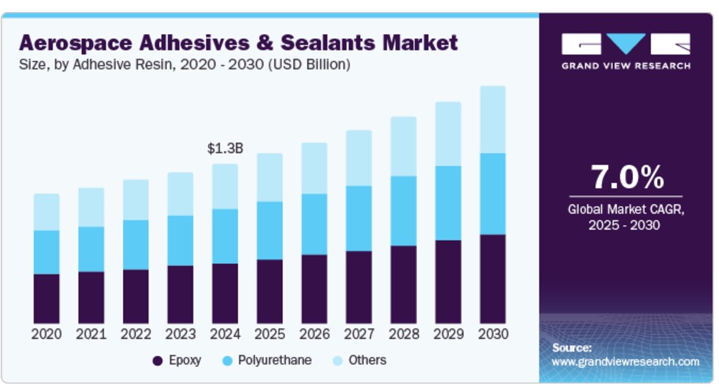 글로벌 항공우주 접착제 및 실란트 시장 규모는 2024년 1,319.6억 달러로 추정되며 2025년부터 2030년까지 7.0%의 CAGR을 기록할 것으로 예상됩니다. 항공우주 접착제 및 실란트 시장은 주로 경량화 및 연료 효율성이 높은 항공기에 대한 수요 증가에 의해 주도되고 있습니다. 항공우주 산업이 연비를 개선하고 온실가스 배출을 줄이기 위해 복합재 및 알루미늄 합금과 같은 경량 소재를 사용하는 방향으로 크게 변화하고 있습니다. 접착제와 실런트는 강력한 접착 솔루션을 제공하는 동시에 항공기의 무게를 증가시키는 패스너와 무거운 재료의 필요성을 줄여주기 때문에 이러한 분야에서 중요한 역할을 합니다. 극한의 온도와 압력 조건에서 작동하는 내구성이 뛰어난 고강도 접착 솔루션의 필요성으로 인해 첨단 항공우주용 접착제와 실런트의 채택이 더욱 증가하고 있습니다.