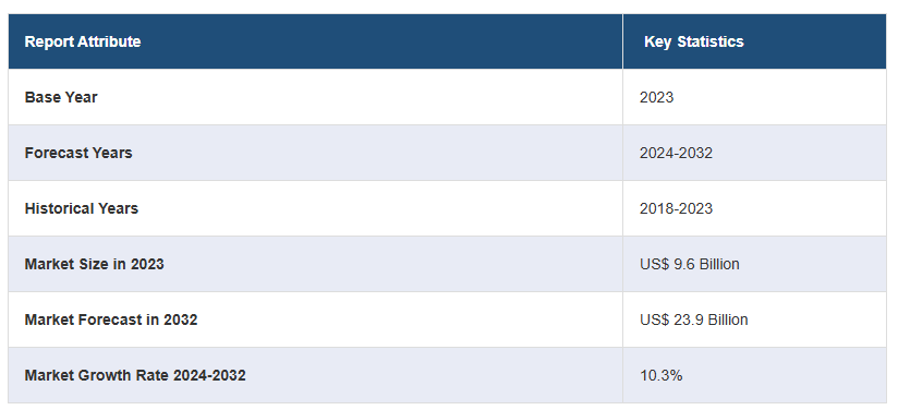 전 세계 농업 미생물 시장 규모는 2023년에 96억 달러에 달했습니다. 앞으로 IMARC 그룹은 2024~2032년 동안 10.3%의 성장률(CAGR)을 보이며 2032년까지 시장 규모가 239억 달러에 달할 것으로 예상하고 있습니다. 이 시장은 지속 가능한 농업 관행에 대한 소비자 및 규제 기관의 압력 증가, 인구 증가에 따른 농업 및 식량 생산량 향상에 대한 수요 증가, 농약 및 비료와 같은 화학물질 투입의 영향에 대한 인식 확대 및 엄격한 정책으로 인해 상당한 성장을 경험하고 있습니다.