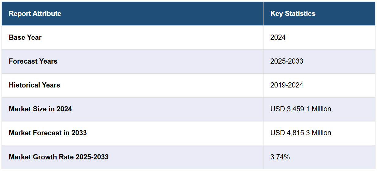 2024년 한국 농업 장비 시장 규모는 USD 3,459.1백만 달러에 달했습니다. 향후 전망으로, IMARC 그룹은 해당 시장이 USD 4,815.3백만 달러에 이를 것으로 예상하며, 2025-2033년 동안 연평균 성장률(CAGR) 3.74%를 기록할 것으로 전망합니다. 전반적인 현대화에 기여하는 첨단 기계에 대한 수요 증가가 지역 시장의 주요 성장 동력이다.