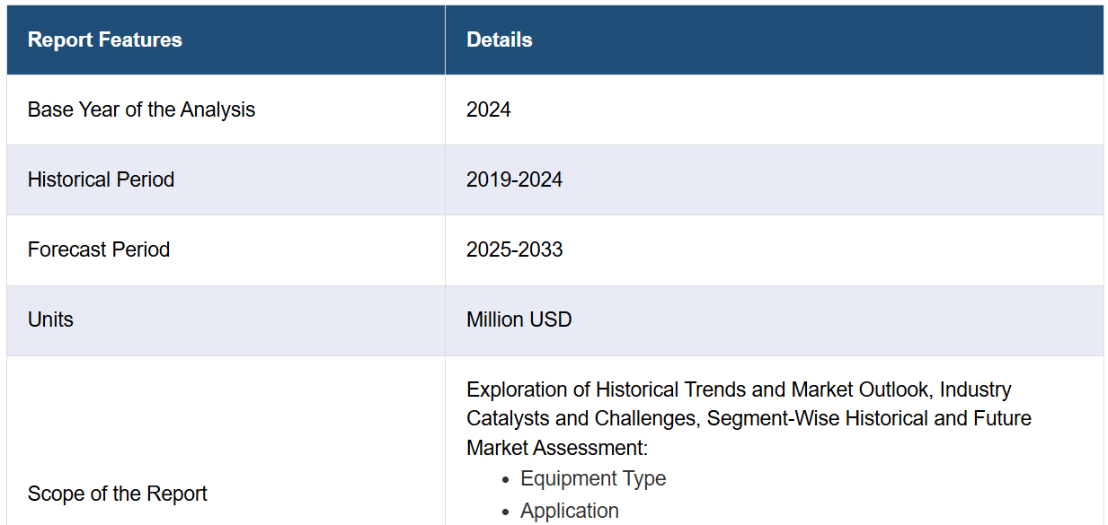 IMARC 그룹은 2025-2033년 국가별 예측과 함께 시장 각 세그먼트의 주요 동향 분석을 제공합니다. 본 보고서는 장비 유형, 적용 분야, 판매 채널 기준으로 시장을 분류하였습니다.