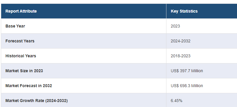 글로벌 항공기 안테나 시장은 2023년 3억 9,770만 달러에서 2032년에는 6억 9,830만 달러에 이를 것으로 예상되며, 이 기간 동안 연평균 성장률(CAGR)은 6.45%에 달할 것으로 보입니다. 시장 성장은 항공 여행 수요 증가, 기술 발전, 위성 기반 시스템의 채택 확대, 항공기 안전 및 보안에 대한 관심 증가 등 여러 요인에 의해 주도되고 있습니다.