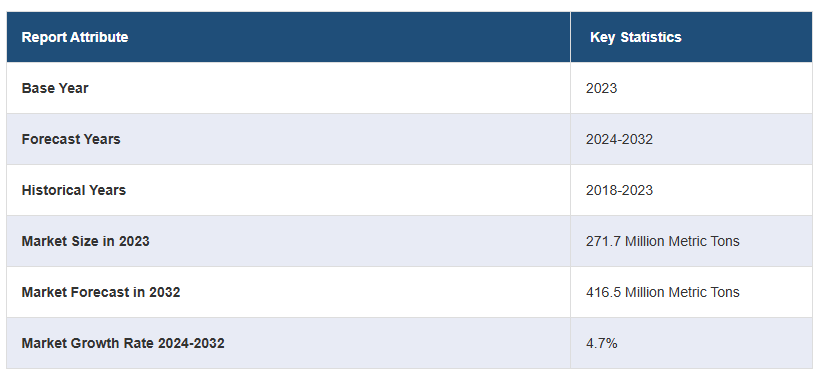 전 세계 알팔파 건초 시장 규모는 2023년에 2억 7,170만 미터톤에 달했습니다. 앞으로 IMARC 그룹은 2024~2032년 동안 4.7%의 성장률(CAGR)을 보이며 2032년까지 시장이 4억 1650만 미터톤에 달할 것으로 예상하고 있습니다. 현재 아시아 태평양 지역은 가축, 특히 소 사육 인구가 많아 알팔파 건초 시장에서 가장 큰 점유율을 차지하고 있습니다.