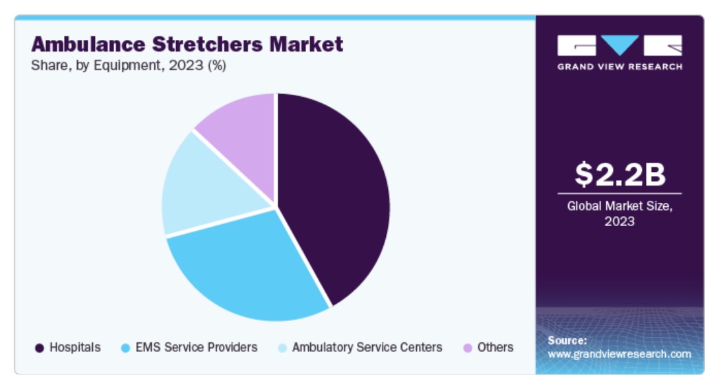 EMS 서비스 제공업체는 예측 기간 동안 가장 빠른 4.1%의 CAGR로 성장할 것으로 예상됩니다. 구급차 들것은 응급 상황에서 환자를 안전하고 편안하게 이송하는 데 매우 중요합니다. 신규 진입자들은 경쟁 우위를 확보하기 위해 혁신적인 전략을 활용하고 있습니다. 케냐의 스타트업인 캡슐(Capsule)은 환자가 원격으로 구급차를 예약할 수 있는 앱인 “플레어(Flare)”를 출시했습니다. 위치 정보 서비스와 실시간 교통 정보 업데이트를 통합한 Flare는 구급차 들것 사용의 증가를 촉진하여 이 산업에 혁명을 일으킬 것으로 기대됩니다.