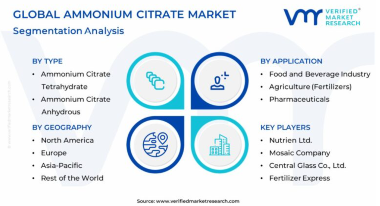글로벌 구연산암모늄 시장은 유형, 용도, 최종 사용자, 지리 등을 기준으로 세분화됩니다.