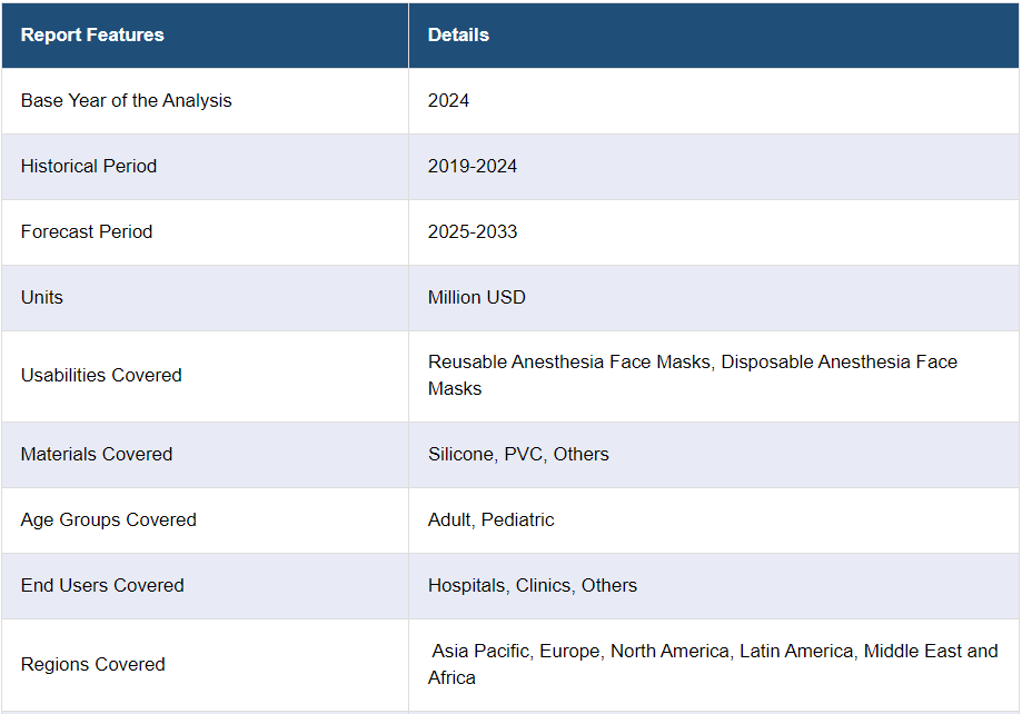 IMARC 그룹은 2025-2033년 글로벌, 지역 및 국가 수준에서의 예측과 함께 글로벌 마취 안면 마스크 시장의 각 부문의 주요 동향에 대한 분석을 제공합니다. 이 보고서는 사용성, 소재, 연령대, 최종 사용자를 기준으로 시장을 분류했습니다.