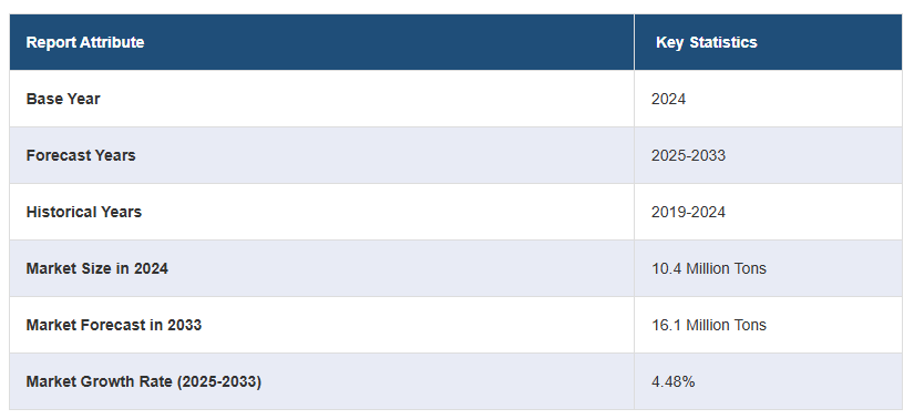 전 세계 아닐린 시장은 2024년 1,040만 톤에 이를 것으로 예상되며, 2025년부터 2033년까지 연평균 성장률(CAGR) 4.48%를 기록할 것으로 보입니다. 특히 타이어 산업에서 고무 제품에 대한 수요 증가와 지속 가능한 고무 공급원에 대한 관심이 시장 성장을 이끄는 주요 요인으로 작용하고 있습니다. 아닐린은 방향족 아민으로, 염료, 의약품, 고무 가공용 화학물질 등 다양한 분야에서 중요한 역할을 하는 기본 유기 화합물입니다.