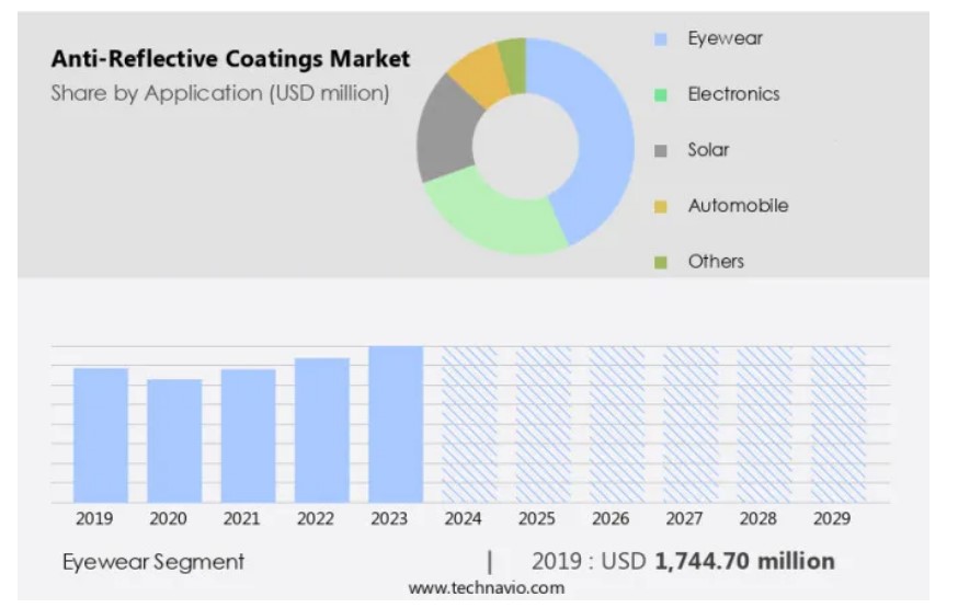 또한, 시장에서는 노안과 근시 등 시력이 약한 인구의 증가에 대응하고 있습니다. 전자 제품에 반사 방지 코팅을 사용하는 것은 반도체 및 기타 부품의 성능을 향상시키는 데 필수적입니다. 이러한 코팅은 눈부심과 반사를 줄여 전자 장치의 전반적인 효율성과 생산성을 향상시킵니다. 반사 방지 코팅은 눈부심 감소 및 대비 향상 솔루션을 제공함으로써 전자 제품 및 안경 등 다양한 산업 분야에서 중요한 역할을 합니다. 코팅 기술의 발전은 계속해서 가능성의 경계를 넓혀 혁신과 성장의 새로운 기회를 제공합니다. 반사 방지 코팅은 컴퓨터 화면의 시야를 개선하거나 누진 렌즈의 선명도를 향상시키는 등 최적의 시각 조건을 만드는 데 필수적인 요소입니다.