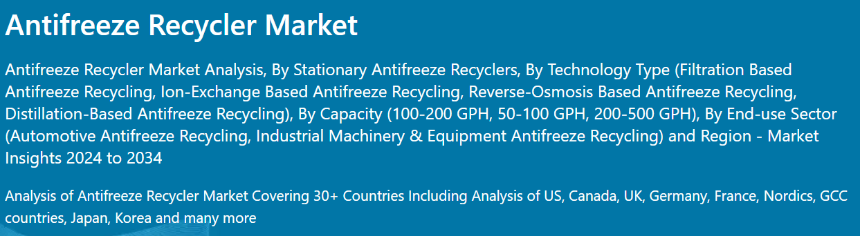 Fact.MR이 최근 발표한 보고서는 판매 성장, 생산 능력, 잠재적 기술 발전에 대한 데이터와 함께 여러 지역의 주요 부동액 재활용 업체의 가격대에 대한 자세한 통찰력을 제공합니다.