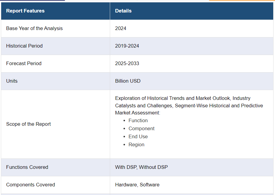 IMARC 그룹은 2025-2033 년 글로벌, 지역 및 국가 수준의 예측과 함께 글로벌 오디오 CODEC 시장 보고서의 각 부문의 주요 동향에 대한 분석을 제공합니다. 이 보고서는 기능, 구성 요소 및 최종 용도에 따라 시장을 분류했습니다.