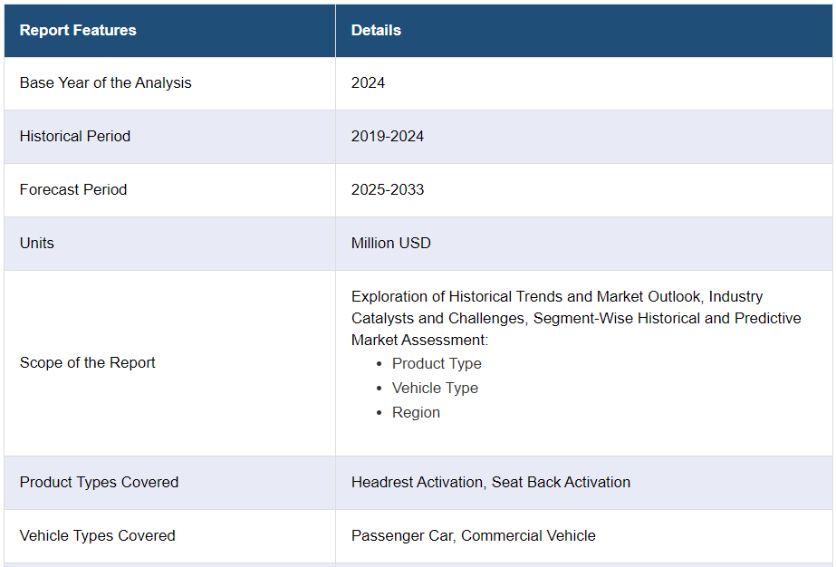 IMARC 그룹은 2025-2033년 글로벌, 지역 및 국가 수준에서 자동차 액티브 시트 헤드레스트 시장 예측과 함께 시장 각 부문의 주요 동향에 대한 분석을 제공합니다. 이 보고서는 제품 유형과 차량 유형에 따라 시장을 분류했습니다.