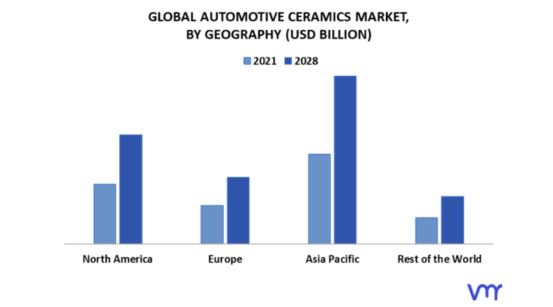 지리를 기준으로 글로벌 자동차 세라믹 시장은 북미, 유럽, 아시아 태평양 및 기타 세계로 분류됩니다. 아시아 태평양 지역은 가장 큰 시장 점유율을 차지하고 있으며 예측 기간 동안 가장 빠른 속도로 성장할 것으로 예상됩니다. 중국, 인도, 일본, 한국 등 아시아 태평양 지역의 주요 국가에서 대규모 자동차 생산 및 판매가 이 지역의 성장에 기여하고 있습니다. 외국인 투자 유입, 저비용 노동력의 가용성, 대상 인구의 증가는 모두 시장 성장을 촉진할 것으로 예상됩니다. 빠르게 발전하는 자동차 제조 부문과 이 부문에 대한 투자 증가로 인해 시장은 더욱 성장할 것으로 예상됩니다. 북미 지역이 크게 증가할 것으로 예상됩니다.