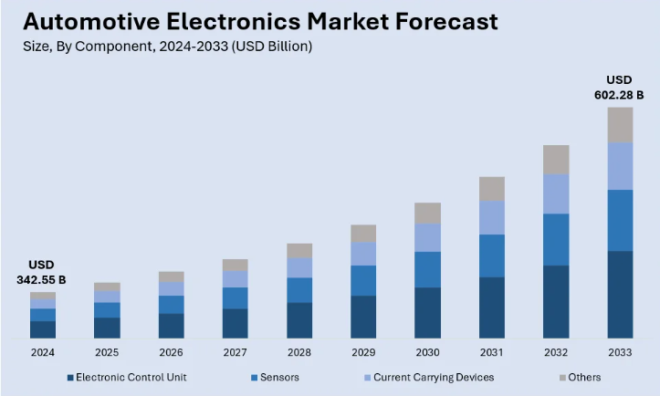 | 자동차 전장 시장은 최근 몇 년 동안 급속히 성장하고 있으며, 이는 소비자들이 첨단 안전 기능에 대한 수요를 높이고 있기 때문입니다. 자동차 제조업체들은 도로 안전을 강화하기 위해 다양한 전자 장치를 통합하고 있으며, 특히 NXP 반도체와 TSMC의 협력을 통해 고급 차량 네트워크 프로세서를 대량 생산하고 있습니다. 또한 인피니언 테크놀로지스는 새로운 MOSFET 패키지를 출시하여 다양한 전기 및 하이브리드 차량의 요구를 충족하고 있습니다. 충돌 방지 시스템과 자율 비상 제동 기능의 통합이 증가하면서 시장 전망도 긍정적으로 평가되고 있습니다. 전기 및 하이브리드 차량의 부상은 또 다른 주요 동인으로, 제조업체들은 내연기관에서 전기 파워트레인으로 전환하고 있습니다. 전 세계적으로 전기차 수요가 증가하고 있으며, 정부가 보조금과 인센티브를 제공하는 등 전기차 도입을 촉진하고 있습니다. 향후 몇 년간 전자 제어 장치(ECU)의 수요가 증가할 것으로 보이며, 2040년까지 신차 판매의 약 54%가 전기차로 예상됩니다. 커넥티드 차량과 사물인터넷(IoT)의 확산도 시장 성장을 촉진하고 있습니다. 여러 자동차 제조업체들이 기술 기업과 협력하여 운전 경험과 편의성을 향상시키기 위한 첨단 기능을 차량에 통합하고 있습니다. 예를 들어, ST마이크로일렉트로닉스와 마이크로소프트의 협력은 보안성이 뛰어난 IoT 디바이스 개발을 간소화하는 데 기여하고 있습니다. 자동차 전장 시장은 구성 요소, 차량 유형, 유통 채널 및 애플리케이션에 따라 세분화됩니다. 전자 제어 장치(ECU)는 차량 성능을 향상시키는 데 필수적이며, 센서는 자율주행 기술의 발전에 기여하고 있습니다. 차량 유형별로는 승용차가 시장을 선도할 것으로 보이며, 유통 채널에서는 OEM이 주요 역할을 할 것으로 예상됩니다. 인포테인먼트 시스템의 수요도 증가하고 있으며, 이는 소비자들이 차량 내 엔터테인먼트와 연결성을 중시하는 경향을 반영합니다. 아시아 태평양 지역은 자동차 전장 시장에서 가장 큰 점유율을 차지하고 있으며, 중국, 일본, 한국의 강력한 제조 기반이 이를 뒷받침하고 있습니다. 각국 정부의 지원 정책과 연구 개발 투자도 이 지역의 기술 혁신을 촉진하고 있습니다. 미국의 자동차 전장 시장은 전기 자동차의 급속한 채택과 기술 발전으로 인해 성장하고 있으며, 유럽에서도 비슷한 추세가 나타나고 있습니다. 아시아 태평양 지역은 전기자동차 도입에 대한 정부의 지원으로 빠른 성장을 보이고 있으며, 라틴 아메리카와 중동 및 아프리카 지역 역시 자동차 전장 시장이 성장하고 있습니다. 경쟁 환경에서는 자동차 제조업체와 전장 공급업체 간의 협업이 일반적인 전략으로, 신규 진입자들은 틈새 시장에서 시장 다각화에 기여하고 있습니다. 주요 기업들은 에너지 효율적인 전자 부품과 친환경 솔루션에 투자하고 있으며, 고객의 선호도 변화를 반영하여 시장에서의 입지를 강화하고 있습니다. |