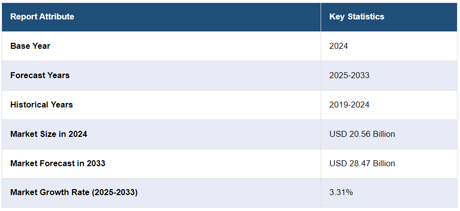 글로벌 자동차 연료 탱크 시장 규모는 2024년 205억 6,000만 달러로 평가되었습니다. 앞으로 IMARC 그룹은 2025-2033년 동안 3.31%의 CAGR을 기록하며 2033년까지 시장이 284억 7천만 달러에 달할 것으로 예상하고 있습니다. 현재 아시아 태평양 지역은 2024년 52.6% 이상의 상당한 시장 점유율을 차지하며 시장을 지배하고 있습니다. 이 시장은 대중의 차량 보급 증가, 차량의 연비 향상에 대한 수요 증가, 탄소 영향을 완화하고 환경 지속 가능성을 유지하기 위한 엄격한 환경 규제로 인해 안정적인 성장을 경험하고 있습니다.
