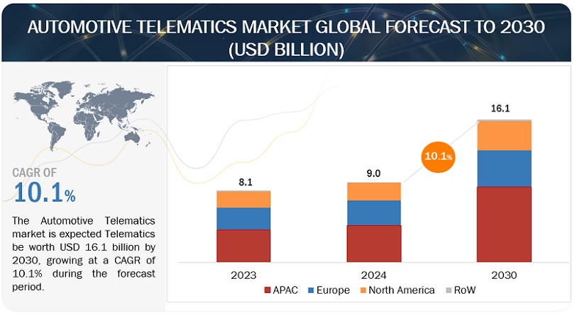 [260페이지 보고서] 자동차 텔레매틱스 시장은 2024년 90억 달러에서 2030년 161억 달러로 10.1%의 연평균 성장률(CAGR)로 성장할 것으로 전망됩니다. 이러한 성장은 유럽과 일본, 중국, 미국 등의 국가에서 eCall과 같은 안전 기능이 강화된 차량 생산이 증가했기 때문입니다. 임베디드 텔레매틱스의 시장 채택률이 확대되어 예측 기간 동안 자동차 텔레매틱스 솔루션 시장을 촉진할 것으로 예상됩니다.
