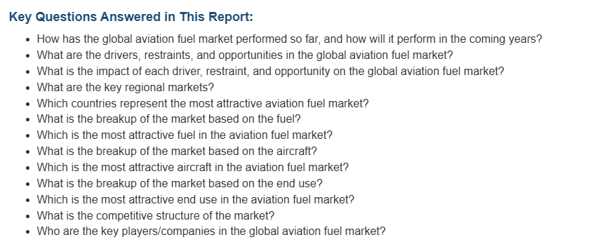 IMARC 그룹은 2025-2033년 동안의 글로벌, 지역, 국가 수준의 예측과 함께, 시장의 각 세그먼트의 주요 트렌드에 대한 분석을 제공합니다. 저희의 보고서는 연료, 항공기, 최종 용도에 따라 시장을 분류했습니다.