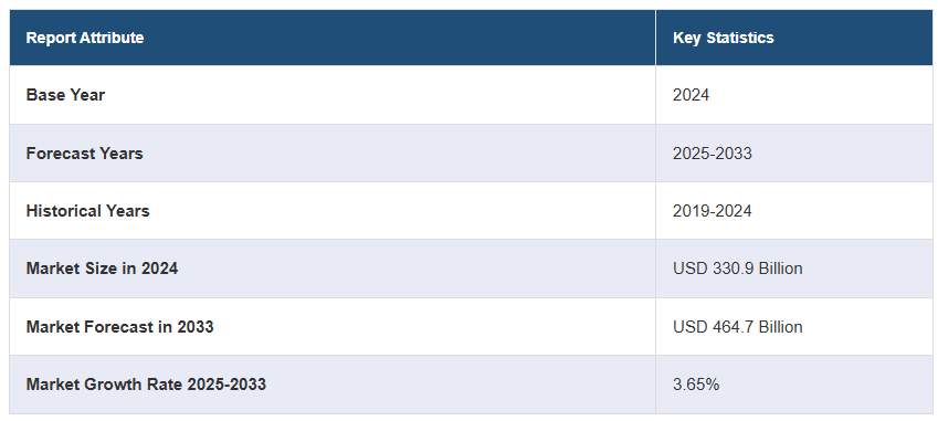 글로벌 항공 연료 시장 규모는 2024년에 3,309억 달러에 달했습니다. IMARC 그룹은 2033년까지 시장 규모가 미화 4,647억 달러에 달할 것으로 예상하고 있으며, 2025-2033년 동안 연평균 성장률(CAGR)이 3.65%에 달할 것으로 전망하고 있습니다. 항공 승객 수의 증가, 항공 산업의 상당한 성장, 항공을 통한 외래 환자 수송의 증가 추세, 방위 및 군사 산업에 대한 막대한 투자 등이 시장 성장을 견인하는 요인입니다.