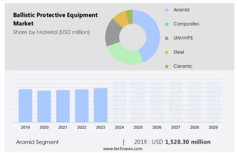 또한, 비정규전 및 국가 간 분쟁에 대한 더 나은 보호를 제공하기 위해 프로그램 가능한 탄약과 관통성 탄도 충격 소재에 대한 연구가 진행되고 있습니다. 게다가, 운송 보안, 대테러, 해양 선박에서의 탄도 보호에 대한 필요성이 증가하고 있어 시장 성장을 더욱 촉진하고 있습니다. 인증과 소재의 무게는 시장에서 필수적인 고려 사항입니다. 유럽 규격(EN) 및 기타 인증은 장비가 특정 안전 기준을 충족하는지 확인합니다. 또한, 보호 장비의 무게는 특히 군인과 법 집행 기관의 채택에 중요한 요소입니다. 가벼운 디자인은 이동이 쉽고 착용 시간이 길어 선호됩니다. 시장에서의 경쟁은 치열하며, 여러 업체가 인수 합병과 같은 비유기적 성장 전략을 통해 제품을 확장하고 시장 점유율을 높이기 위해 노력하고 있습니다. 그러나 다양한 분야에서 탄도 보호에 대한 수요가 증가함에 따라 시장 성장 속도는 계속해서 강세를 유지할 것으로 예상됩니다.