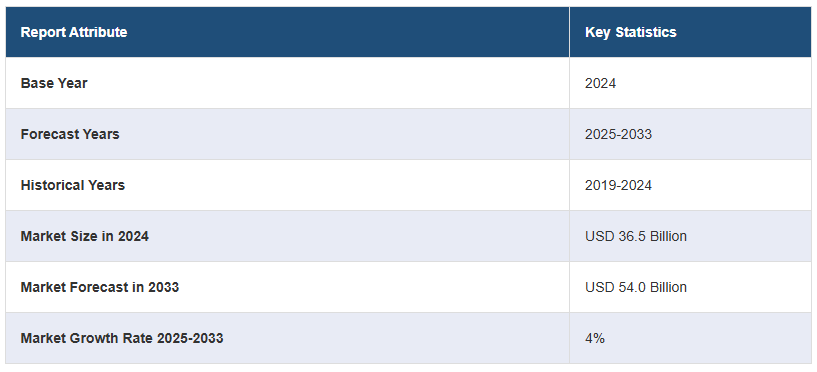 2024년 글로벌 배리어 필름 시장 규모는 미화 365억 달러에 달했습니다. IMARC 그룹은 2025~2033년 동안 4%의 성장률(CAGR)을 보이며 2033년에는 시장이 540억 달러에 달할 것으로 예상하고 있습니다. 포장 식음료(F&B)에 대한 수요 증가, 최근 제약 포장의 발전, 전자상거래 플랫폼의 상당한 성장, 휴대용 및 경량 포장 솔루션에 대한 수요 증가, 공급망의 글로벌화 등이 시장을 이끄는 주요 요인 중 일부입니다.