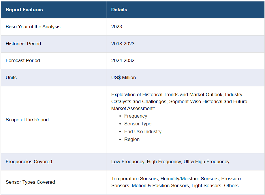 IMARC Group은 2024-2032년 글로벌, 지역 및 국가 수준에서의 예측과 함께 시장 각 부문의 주요 동향에 대한 분석을 제공합니다. 이 보고서는 주파수, 센서 유형 및 최종 사용 산업을 기준으로 시장을 분류했습니다.