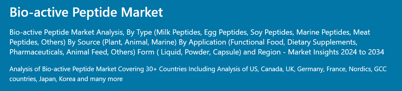 글로벌 바이오 액티브 펩타이드 시장 : 유형별 (우유 펩타이드, 달걀 펩타이드) 한국, 아시아, 미국 2024-2034 시장 예측