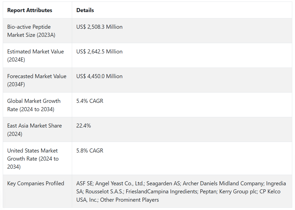 바이오 액티브 펩타이드 시장 전망 (2024-2034)