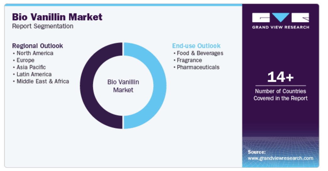 이 보고서는 2018년부터 2030년까지 전 세계, 지역, 국가 수준의 매출 성장률을 예측하고 각 하위 부문에서 최신 산업 동향을 분석합니다. 이 연구를 위해 Grand View Research는 최종 용도와 지역을 기준으로 글로벌 바이오 바닐린 시장 보고서를 세분화했습니다.