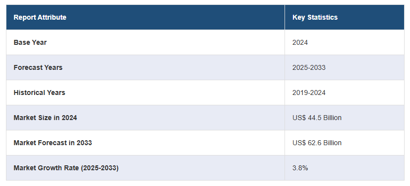 전 세계 바이오디젤 시장 규모는 2024년에 445억 달러에 달했습니다. IMARC Group은 2025~2033년 동안 3.8%의 성장률(CAGR)을 보이며 2033년까지 시장 규모가 626억 달러에 이를 것으로 예상하고 있습니다. 재생 에너지를 장려하는 정부 규제, 에너지 안보 및 유가 변동성에 대한 우려 급증, 생산 공정의 지속적인 기술 발전, 환경 문제에 대한 대중의 인식 증가, 기후 변화에 대처하기 위한 노력 확대 등이 시장을 이끄는 요인 중 일부입니다.