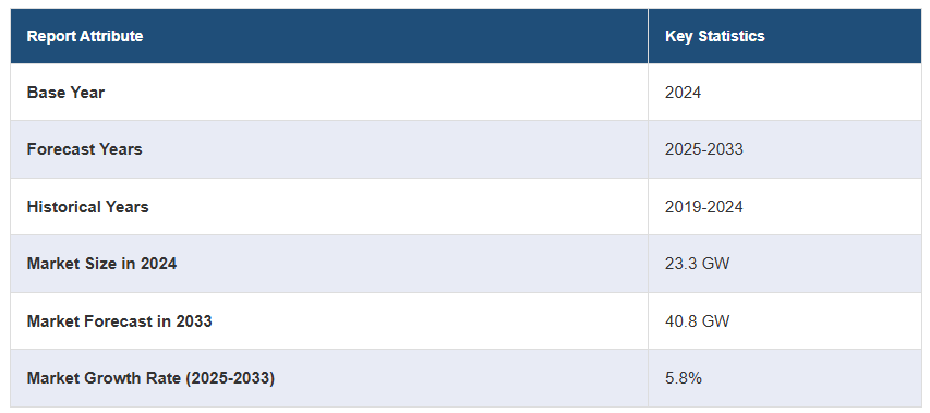 글로벌 바이오가스 플랜트 시장 규모는 2024년에 23.3GW에 달했습니다. IMARC 그룹은 2033년까지 시장 규모가 40.8GW에 달할 것으로 예상하고 있으며, 2025-2033년 동안 5.8%의 성장률(CAGR)을 보일 것으로 전망하고 있습니다. 대체 가능한 지속 가능한 에너지 원의 채택을 장려하는 정부의 이니셔티브가 증가하고, 폐기물 관리 문제가 증가하고, 통합 공급망이 널리 채택되는 것이 시장을 주도하는 주요 요인 중 일부입니다.