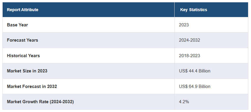전 세계 혈액 제제 시장은 2023년에 444억 달러 규모로, 2024년부터 2032년까지 연평균 4.2% 성장하여 2032년에는 649억 달러에 이를 것으로 예상됩니다. 이 시장의 성장은 만성 질환의 유병률 증가, 정부의 의료 인프라 개선 이니셔티브, 헌혈에 대한 대중의 인식 상승, 혈액 처리 기술의 발전, 개인 맞춤형 의약품의 채택 증가 등에 의해 촉진되고 있습니다.