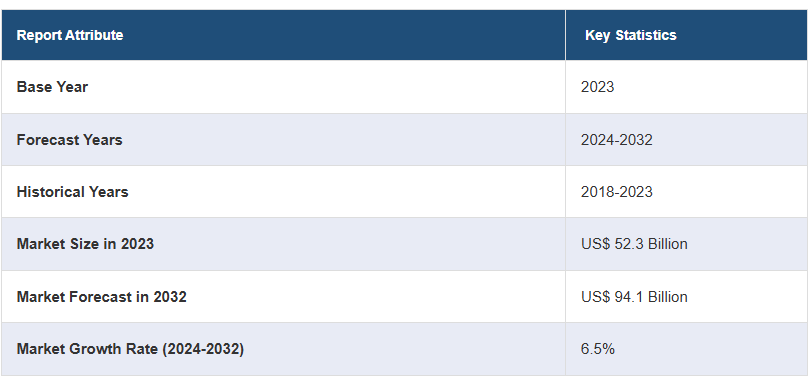전 세계 혈액 처리 장치 및 소모품 시장 규모는 2023년에 523억 달러에 달했습니다. 앞으로 IMARC 그룹은 2024~2032년 동안 6.5%의 성장률(CAGR)을 보이며 2032년까지 시장이 941억 달러에 이를 것으로 예상하고 있습니다. 혈액 및 그 제품에 대한 수요 증가, 정부 및 비정부 기관의 지원 정책, 최근의 폐쇄형 채혈 시스템 개발이 시장을 이끄는 주요 요인 중 일부입니다.