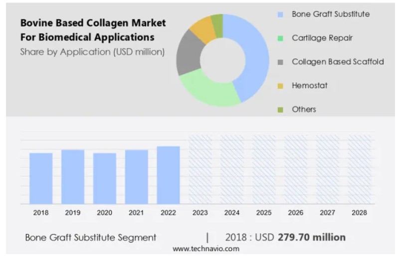 뼈 이식 대체재 부문은 예측 기간 동안 상당한 성장을 보일 것으로 예상됩니다. 소 콜라겐은 뼈 이식 대체재, 연골 복구, 피부 대체재 등을 위한 콜라겐 기반 스캐폴드 생산을 포함한 다양한 생체 의학 응용 분야에서 유용한 생체 재료입니다. 태아 소 진피와 신생아 소 진피는 일반적으로 사용되는 콜라겐 공급원입니다.