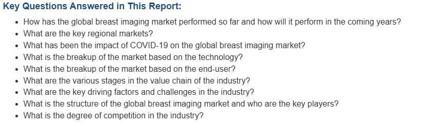 이 보고서는 Allengers Medical Systems Limited, Aurora Health Care Inc. (Schoen Clinic), Canon Inc., Carestream Health Inc. (Onex Corporation), Delphinus Medical Technologies, Dilon Technologies Inc., Fujifilm Holdings Corporation, GE Healthcare, Hologic Inc., Koninklijke Philips N.V., Micrima Limited, Planmed Oy, Siemens Healthineers AG (Cerner Corporation), Toshiba Corporation 등입니다.