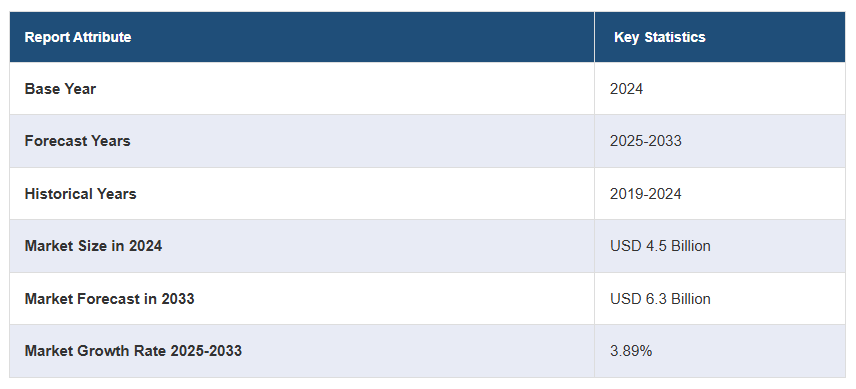 글로벌 건축 및 건설용 테이프 시장 규모는 2024년에 45억 달러에 달했습니다. IMARC 그룹은 2033년까지 시장 규모가 63억 달러에 달할 것으로 예상하고 있으며, 2025-2033년 동안 3.89%의 성장률(CAGR)을 보일 것으로 전망하고 있습니다. 건설 산업의 상당한 성장, 엄격한 정부 규제 시행, 광범위한 연구 개발(R&D) 활동, 새롭게 부상하는 DIY(Do-It-Yourself) 트렌드는 시장을 견인하는 주요 요인들입니다.