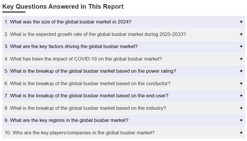 IMARC 그룹은 2025-2033년 글로벌 및 지역 수준에서 부스바 시장 전망과 함께 각 시장 세그먼트의 주요 트렌드에 대한 분석을 제공합니다. 저희 보고서는 전력 등급, 도체, 최종 사용자, 산업을 기준으로 시장을 분류했습니다.