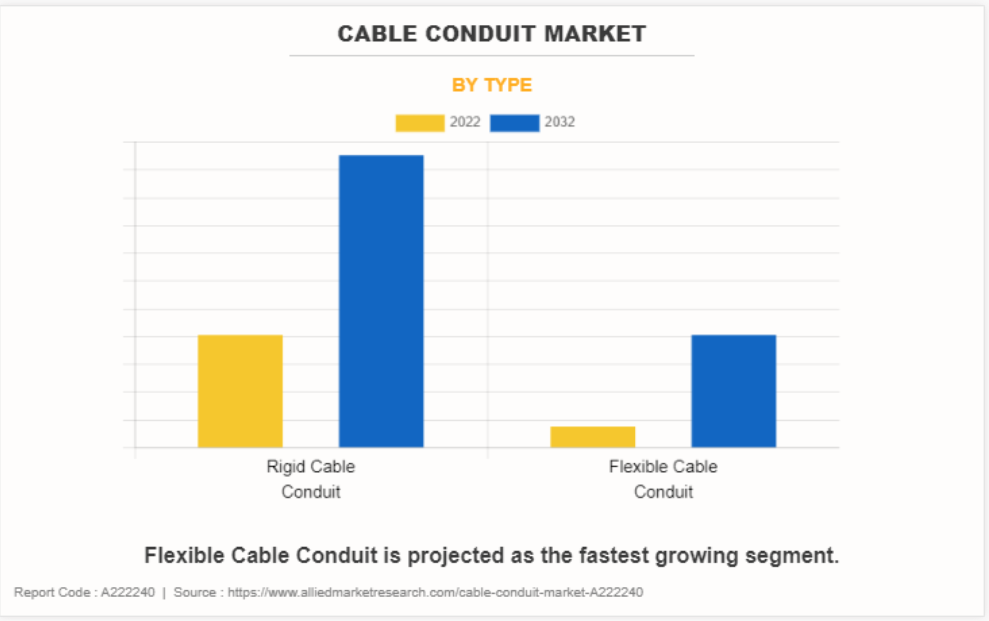 세계의 케이블 도관 시장 : 유형별 (경질 케이블 도관, 유연한 케이블 도관), 시장 예측 2023년-2032년