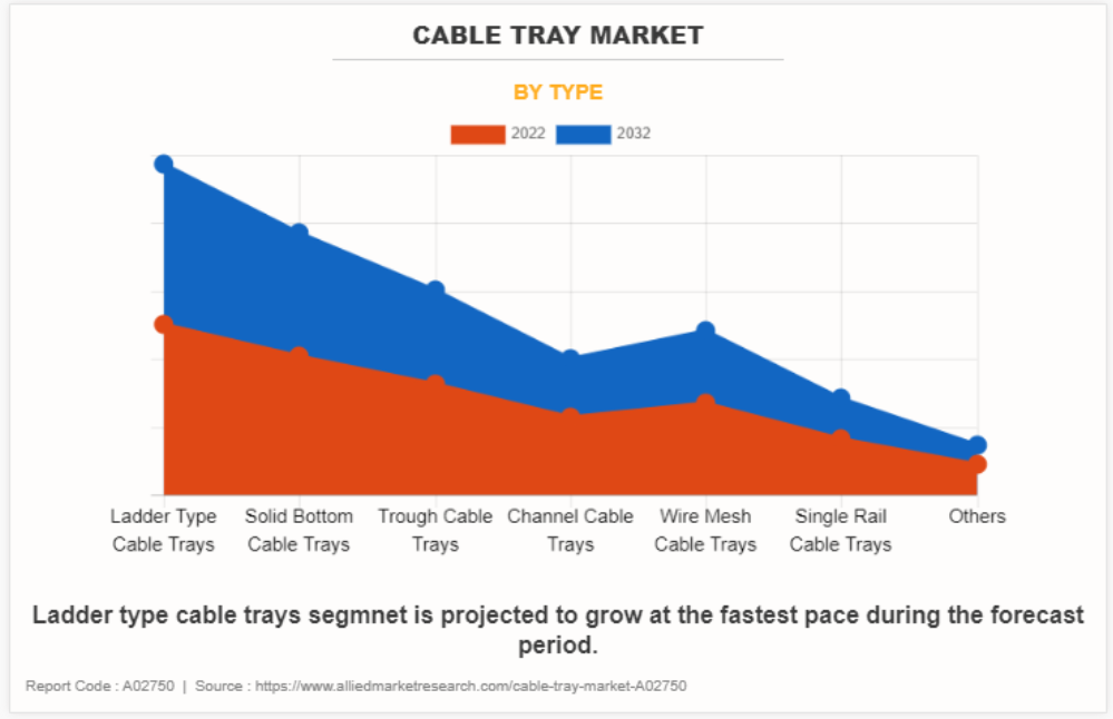 유형에 따라 시장은 사다리형 케이블 트레이, 단단한 바닥 케이블 트레이, 홈통형 케이블 트레이, 채널형 케이블 트레이, 철망 케이블 트레이, 단일 레일 케이블 트레이 등으로 세분화됩니다. 사다리형 케이블 트레이 부문은 2022년 케이블 트레이 시장 점유율의 4분의 1을 차지했습니다. 이 같은 추세는 케이블 트레이 시장 전망 기간 동안에도 계속될 것으로 예상됩니다. 지속 가능한 재료로 재활용된 케이블 트레이 시스템의 시장이 성장하는 추세를 보이고 있습니다.