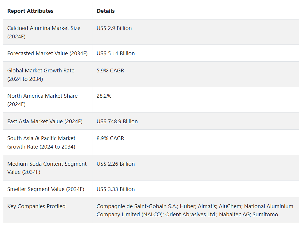 소성 알루미나 시장 전망 (2024~2034년)