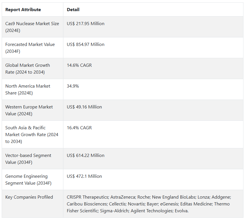 Cas9 뉴클레아제 시장 전망 (2024~2034년)