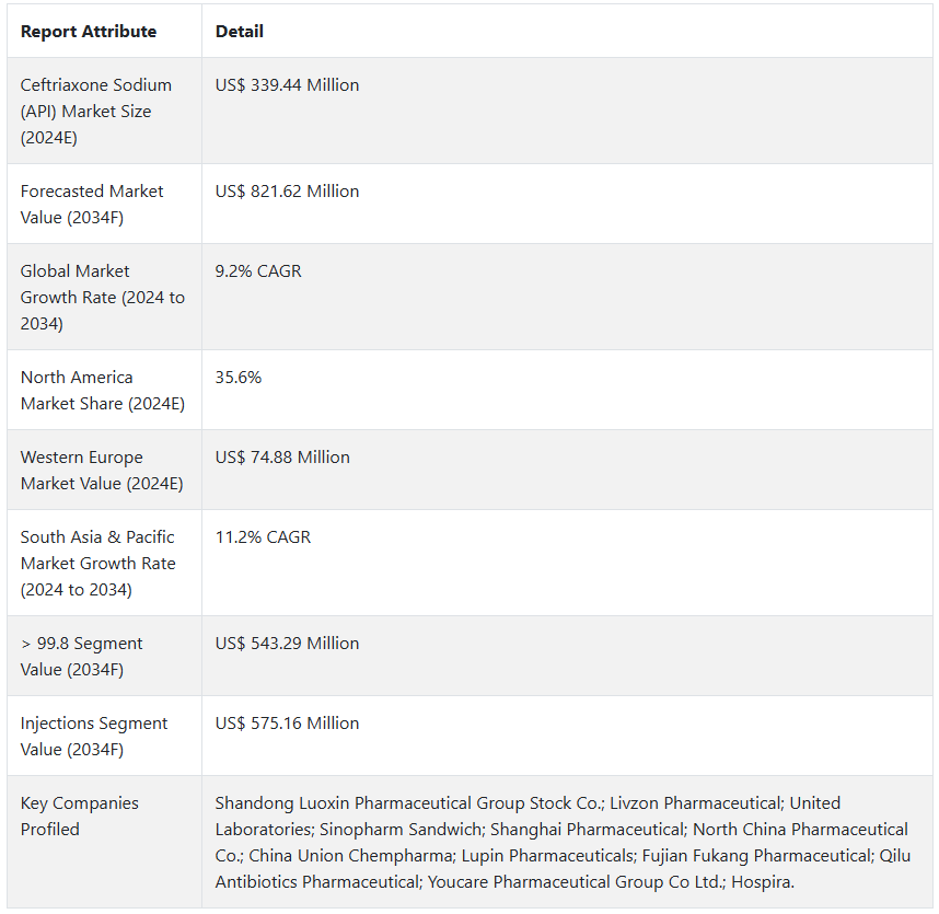 세프트리악손 나트륨(API) 시장 전망(2024~2034년)