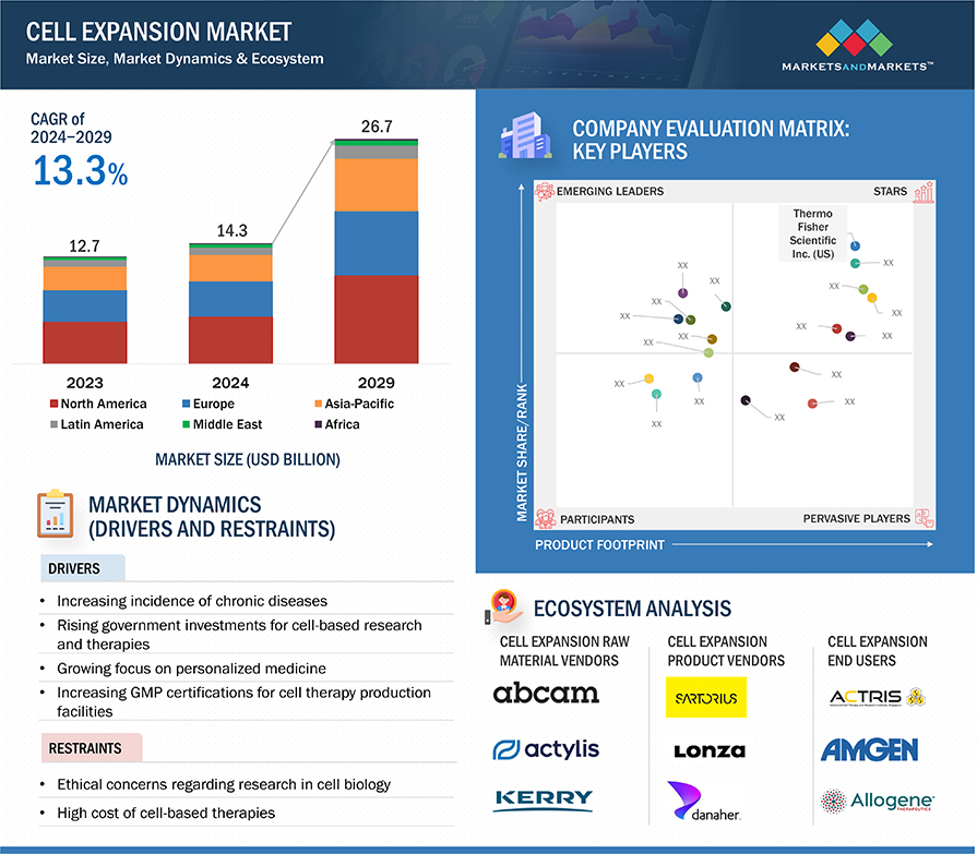 세포 확장 시장의 주요 업체로는 Thermo Fisher Scientific, Inc.(미국), Danaher Corporation(미국), Merck KGaA(독일), Sartorius AG(독일), Corning Incorporated(미국), Lonza(스위스), Terumo Corporation(일본), Eppendorf SE(독일), FUJIFILM Corporation(일본), Bio-Techne(미국), Repligen Corporation(미국), Getinge AB(스웨덴), Miltenyi Biotec(독일), PerkinElmer Inc. (미국), STEMCELL Technologies (캐나다), PromoCell GmBH (독일), HiMedia Laboratories (인도), BD (미국), Takara Bio Inc, Ltd. (일본), 리프로셀(일본), PBS 바이오텍(미국), 아크로바이오시스템즈(미국), 솔리다 바이오텍(독일), 베이징 사이토니치 바이오테크놀로지(중국), 뉴로믹스(중국), 리프로셀(일본), 리프로셀(일본), 리프로셀 바이오테크놀로지(일본), 리프로셀 바이오테크놀로지(일본), 리프로셀 바이오테크놀로지(일본), 리프로셀 바이오테크놀로지(일본) (중국), 뉴로믹스(미국), 바이오넷(스페인), 셀렉서스(영국) 등이 있습니다.