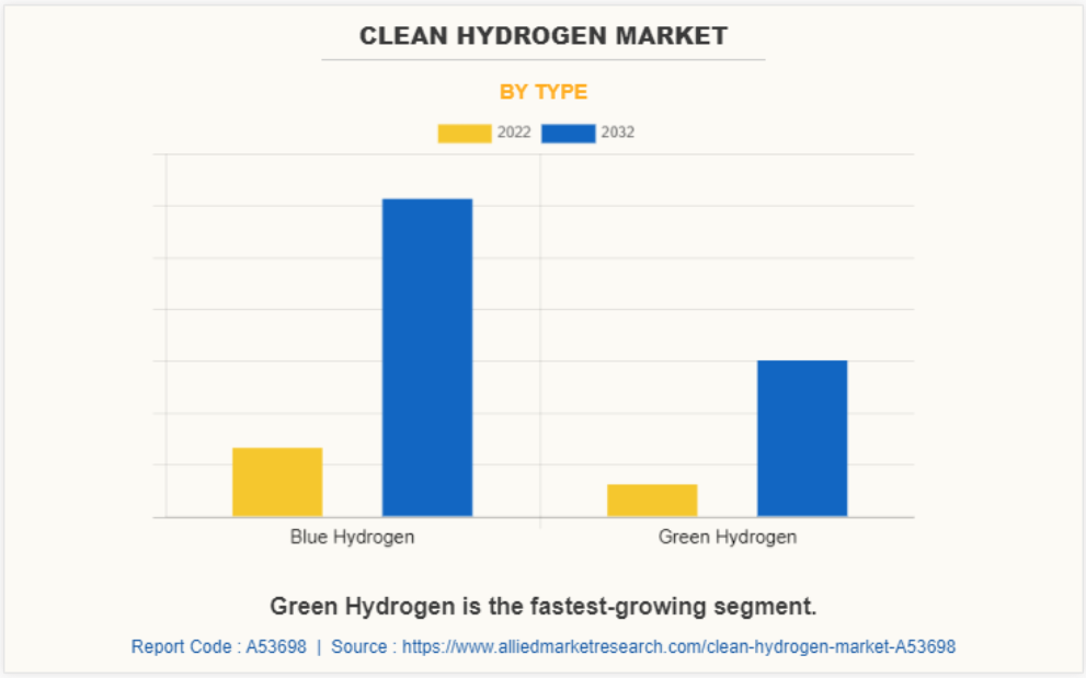 세계의 청정 수소 시장 : 유형별 (청색 수소, 녹색 수소), 시장 동향 2022년-2032년