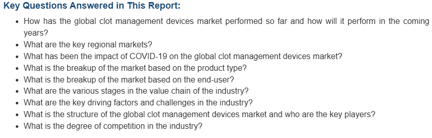 이 보고서는 또한 AngioDynamics Inc., Argon Medical Devices Inc., Boston Scientific Corporation, DePuy Synthes Inc., Edwards Lifesciences Corporation, iVascular S.L.U., Lemaitre Vascular Inc., Medtronic Inc., Straub Medical AG, Stryker Corporation, Teleflex Incorporated, Vascular Solutions 등 일부 주요 업체를 중심으로 시장의 경쟁 구도를 분석했습니다.