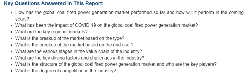 이 보고서는 American Electric Power Company, China Huaneng Group Co. Ltd., Dominion Energy Solutions Inc., Duke Energy Corporation, Eskom Holdings SOC Ltd., Jindal India Thermal Power Limited, NTPC Limited, RWE Aktiengesellschaft, STEAG GmbH (Ksbg Kommunale Beteiligungsgesellschaft Gmbh & Co. Kg) and Tenaga Nasional Berhad 등 주요 업체를 중심으로 시장의 경쟁 구도를 분석했습니다.