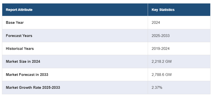 전 세계 석탄 화력 발전 시장 규모는 2024년에 2,218.2GW에 달했습니다. IMARC 그룹은 2033년까지 시장 규모가 2,788.6GW에 달할 것으로 예상하고 있으며, 2025-2033년 동안 연평균 성장률(CAGR)이 2.37%에 달할 것으로 전망하고 있습니다.