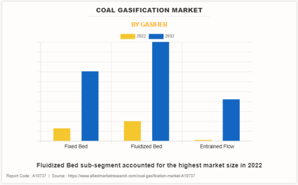가스화기에 따라, 2022년에는 유동층 하위 부문이 시장을 지배했습니다. 유동층 가스화기는 높은 반응 속도, 효율적인 혼합, 열 전달 황 포획, 타르 형성 감소로 인해 석탄 가스화에 널리 선호됩니다. 예를 들어, 이러한 가스화기에서 고체 입자는 가스의 상향 흐름에 의해 유체와 같은 상태로 부유됩니다. 이로 인해 유동층 가스화기는 입자와 가스화제 사이의 우수한 혼합을 제공하여 효율적인 기체-고체 반응을 유도합니다. 또한, 이러한 가스화기는 유동층에서 입자의 지속적인 이동과 순환을 통해 원료를 합성 가스로 효율적으로 전환하여 높은 가스화 반응 속도를 유도합니다. 또한, 유동층 가스화기는 다른 가스화 기술에 비해 타르와 중질 탄화수소 발생량이 적습니다. 따라서, 더 깨끗한 합성가스를 생산할 수 있기 때문에 후속 공정이 간단해지고, 광범위한 가스 정화 작업의 필요성이 최소화됩니다. 이러한 요소들은 향후 몇 년 동안 유동층 가스화기 시장 점유율을 높일 것으로 예상됩니다.