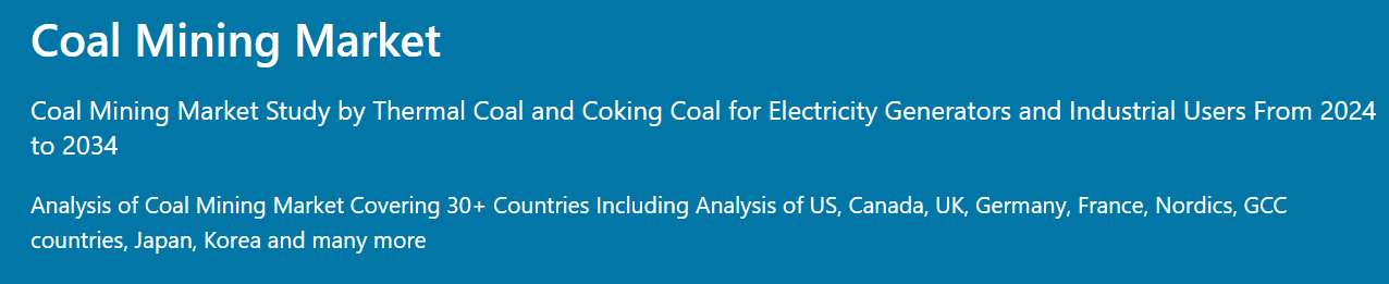 세계의 석탄 채굴 시장 : 제품 및 서비스별 (열탄, 점결탄) 한국, 아시아, 미국 2024년-2034년, 시장 동향