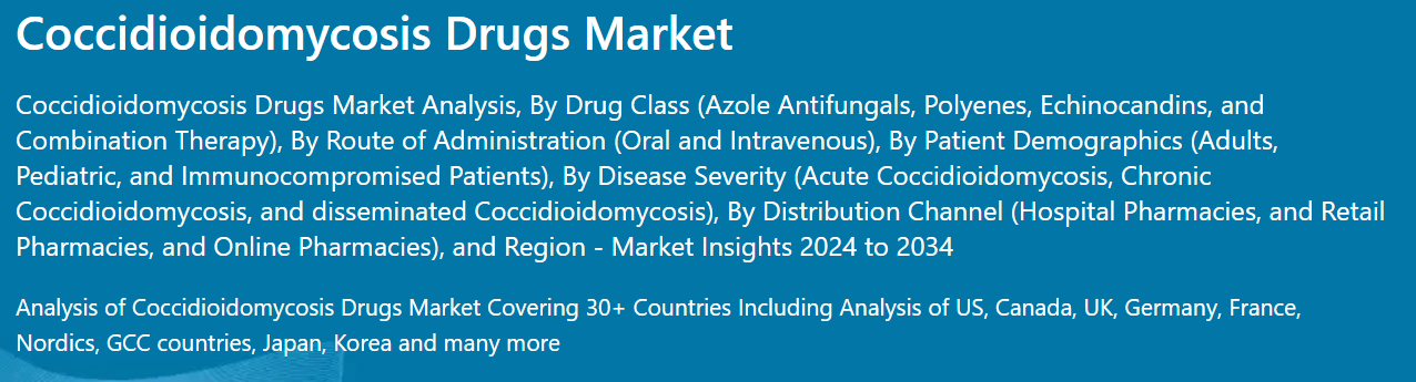 장기(2030~2034): 향후 몇 년 동안, 특히 2030년까지 다양한 요인들이 항진균제 및 예방 백신의 약리학 발전에 기여할 것입니다. 따라서 장기적인 성장 속도는 느려질 수 있습니다. 특히 기후 변화로 인해 콕시디오이데스 진균증이 발생하는 지역에서 환자에게 친화적인 경구 제형과 소외된 인구에 대한 접근성을 확대하려는 노력이 강조되고 있기 때문입니다. 면역 조절 약물은 새로운 치료 방법을 제공할 수 있으며, 장기적인 매출 성장 전망을 높일 수 있습니다.