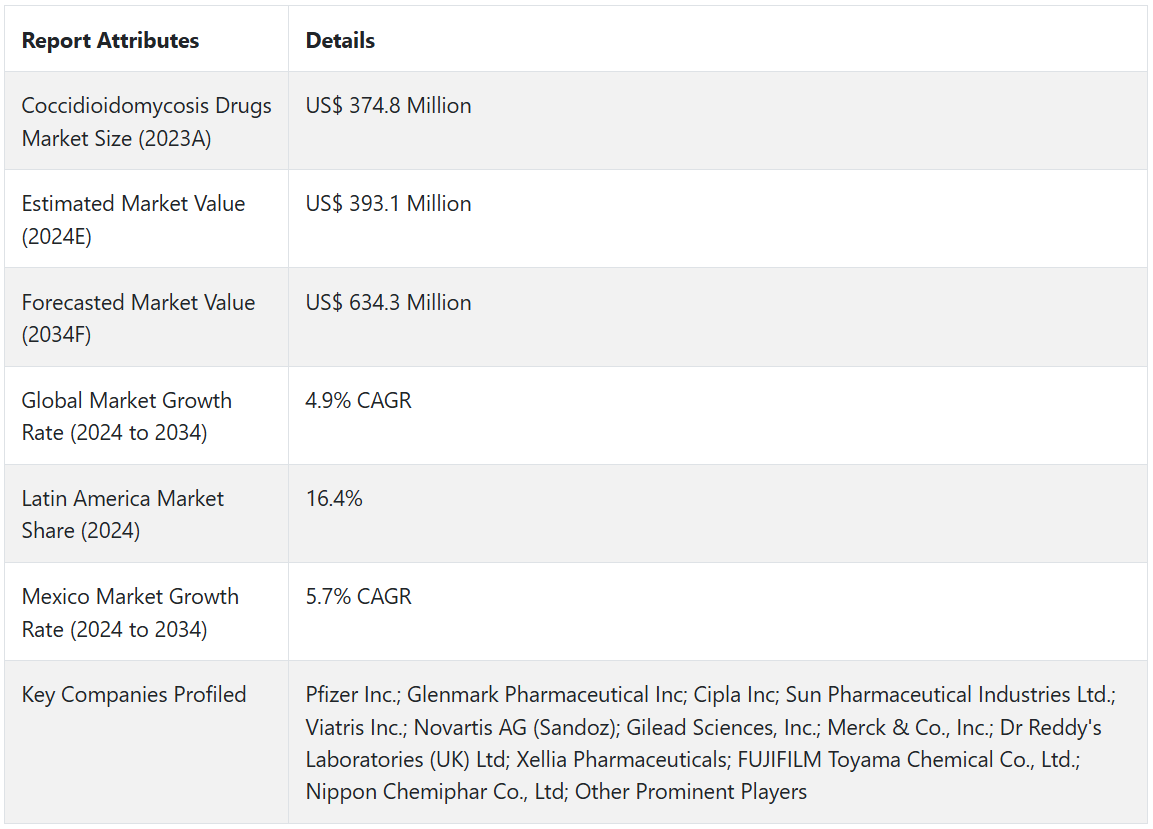 콕시디오이데스 진균증 치료제 시장의 역사적 분석(2019~2023)과 미래(2024~2034) 경로 분석