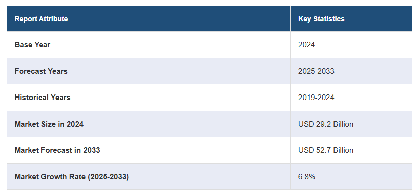 전 세계 코히어런트 광학 장비 시장 규모는 2024년 292억 달러에 달했습니다. IMARC 그룹은 2025~2033년 동안 6.8%의 성장률(CAGR)을 보이며 2033년까지 시장 규모가 527억 달러에 달할 것으로 예상하고 있습니다. 이 시장은 고속 데이터 전송에 대한 수요 증가, 5세대(5G) 네트워크의 확장, 전 세계 대중의 사물인터넷(IoT) 기기 채택 증가에 힘입어 꾸준히 성장하고 있습니다.